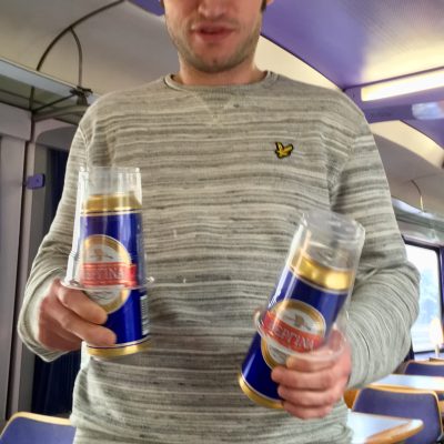 Ergo ließen wir die unbequemen Betten des Hotel Apollo nach zwei Nächten hinter uns und stiegen Sonntagmorgen um 7:18 Uhr in den InterCity von Athen nach Thessaloniki. Die Zugauslastung ließ dabei etwas zu wünschen übrig, so dass wir, neben unseren reservierten Plätzen, weitere Seperees in Beschlag nehmen konnten. Gerade Olbert und ich brauchten nach einer durchzechten Nacht noch ’ne Mütze Schlaf, ehe ab circa 10:30 Uhr ins Bordbistro eingekehrt wurde.