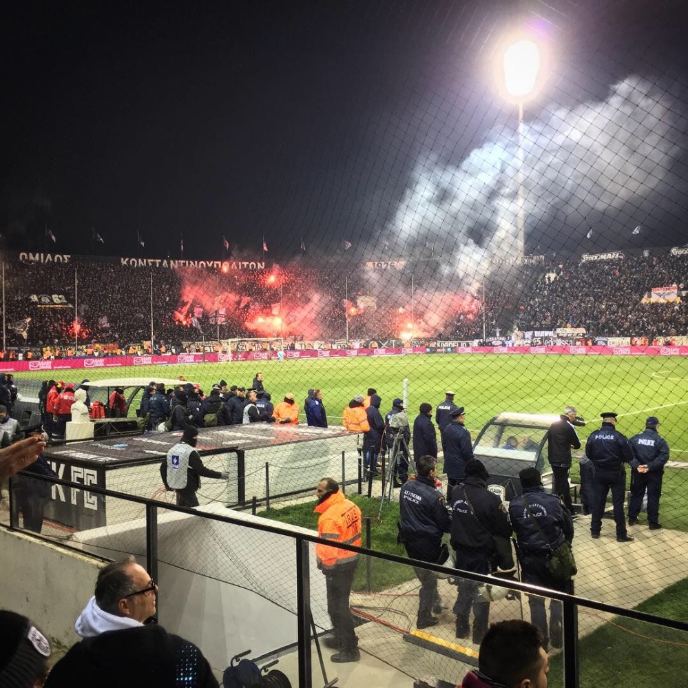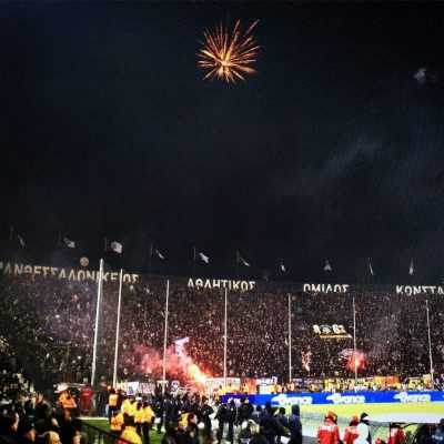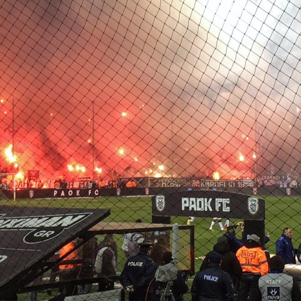 Die Fans sind natürlich nicht weniger heißblütig als ihr Präsident und sorgten auch schon für den ein oder anderen Spielabbruch. Zuletzt ebenfalls in der Vorsaison und zwar gegen Olympiakos aus Piräus, den größten Rivalen außerhalb der Stadtgrenzen. Zwar steht bei den Fans von PAOK kein attischer Club hoch im Kurs, Olympiakos ist aus der Hauptstadt bzw. Hauptstadtregion jedoch das größte Feindbild. Hängt auch damit zusammen, dass PAOK eine Fanfreundschaft mit den Serben von Partizan hat, während Olympiakos mit Roter Stern befreundet ist.