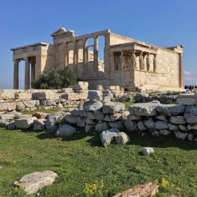 Ein weiterer recht gut erhaltener Tempel auf dem Plateau der Akropolis ist das Erechtheion (Bauende 406 v. Chr.). Hier machten es sich die Athener einfach und widmeten den Tempel gleich 13 Gottheiten und mythischen Heldenfiguren auf einmal. Andere Tempel, wie das Brauroneion (der Göttin Artemis geweiht) und das Heiligtum des Zeus sind leider nur noch zu erahnen. Ansonsten ist hier oben noch die Aussicht in alle vier Himmelsrichtungen ein Traum. Gerade beim heutigen wolkenlosen Himmel hatte man beste Sicht auf die umliegende Stadt, das Meer und die Berge.