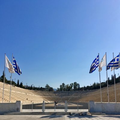 Gut gestärkt, wollten wir den touristischen Schwerpunkt jetzt von der Antike in die Neuzeit verlegen. Bestmöglicher Übergang war in meinen Augen das Olympiastadion von 1896. Nach dem Vorbild und auf den Ruinen des antiken Panathinaiko-Stadion wurde die hufeisenförmige Arena für die ersten Olympischen Spiele der Neuzeit rekonstruiert. Sportveranstaltungen finden hier mittlerweile nur noch selten statt, aber das Stadion und das angeschlossene olympische Museum erfreuen sich bei Touristen großer Beliebtheit. Außerdem wurde es bei den Olympischen Spielen 2004 für die Wettbewerbe im Bogenschießen genutzt und diente als Ziel des Marathonlaufes.