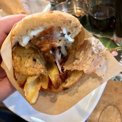 Und wo wir gerade politisch sind; der Syntagma-Platz war natürlich in jüngerer Vergangenheit Schauplatz von etlichen Großdemonstrationen gegen die den Griechen von ihren „Rettern“ auferlegte Austeritätspolitik. Wenn ich an die Griechenhetze in Deutschlands Boulevardzeitung Nr.1 zurückdenke, die einer vielschichtigen Wirtschaftskrise natürlich nicht mal im Ansatz gerecht wurde, werde ich immer noch wütend! Da half nur Frustfressen und dazu ging es wieder zu Just Pita. Diesmal aber wirklich nur für je eine Pita à 2,50 € (Preis übrigens inklusive 24 % Mehrwertsteuer, womit wir wieder bei der Austeritätspolitik wären).