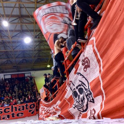 Ihrer Favoritenrolle wurden die Gäste bedauerlicherweise von Anfang an gerecht. Da half es auch nicht, dass Gate 7 erst einen Papierschnipselregen zauberte und dann das ganze Spiel über akustisch Vollgas gab. Der Support schepperte heute in der Halle ganz anders als gestern im Stadion. Dennoch war schon der erste Satz eine deutliche Angelegenheit. 25:17 für Trentino. Ebenso war im zweiten Satz nichts für das Team um den deutschen Mittelblocker Marcus Böhme (270 Länderspiele für Deutschland) zu holen. 25:19 für Trentino.