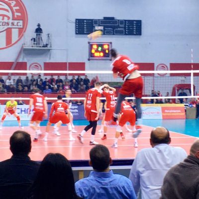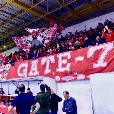 Die Fans applaudierten ihren Spielern trotzdem minutenlang (und auch sportlich fair den Gästen) und diese bedankten sich natürlich ihrerseits für den Support. Trentinos serbischer Star Uroš Kovačević, einer der besten Außenangreifer der Welt, hatte sogar noch das Bedürfnis gefühlt mit jedem griechischen Fan abzuklatschen. Denn dem bekennenden Fan vom FK Crvena zvezda (Roter Stern Belgrad) wurden zur Einstimmung auf das bevorstehende Belgrader Derby ein paar Fangesänge seiner serbischen Fußballliebschaft entgegen geschmettert.