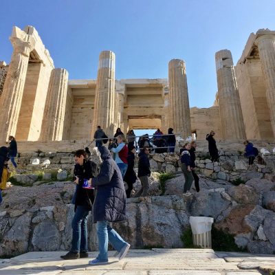 Schon morgens nach dem Aufstehen trennten sich also die Wege und meine beiden Begleiter und ich marschierten via Monastiraki und Plaka rauf zur Athener Akropolis. Akropolis bedeutet übersetzt befestigte Oberstadt oder meinetwegen auch Burgberg und somit haben viele Städte der Hellenosphäre eine Akropolis. Die von Athen hat jedoch solch einen Status in der Welt, dass sie umgangssprachlich für viele „Die Akropolis“ ist, als gäbe es keine anderen Akropolen. Und manche sagen sogar zum Tempel Parthenon einfach Akropolis, weil sie es nicht besser wissen.