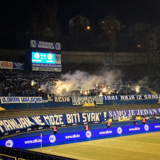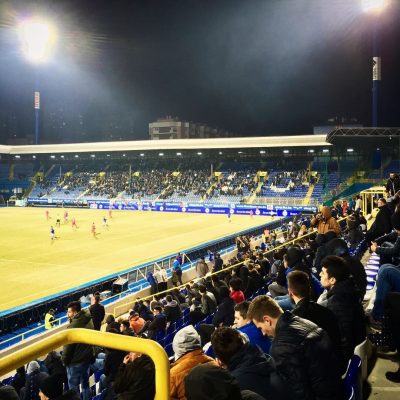 Das Stadion des jugoslawischen Meisters von 1971 und UEFA-Pokal-Halbfinalisten von 1985 (in Summe musste man sich Videoton FC 3:4 geschlagen geben und verpasste somit das Finale gegen Real Madrid) fasst zur Zeit 16.100 Zuschauer und erhielt jüngst eine Teilrenovierung. Die von uns als Standort erwählte Osttribüne (10 KM Eintritt) wurde in den letzten Jahren neugebaut und weist nun 4.650 Sitzschalen und ein elektronisches Einlasssystem auf. Dank der Modernisierungen, die allein durch Fanspenden und private Sponsoren finanziert wurden, finden seit 2017 auch Länderspiele im Stadion Grbavica statt.