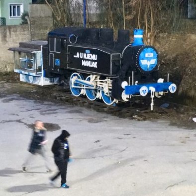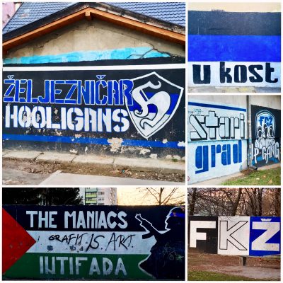 Grbavica war im Bosnienkrieg zwischen Serben und Muslimen hart umkämpft und ist heute fast nur noch von Bosniaken bewohnt. Vor dem Krieg war die Bevölkerung ethnisch heterogener und auch der hier 1921 gegründete Fußballverein Željezničar war als Eisenbahnerclub multiethnisch orientiert, während der große Stadtrivale FK Sarajevo schon immer etwas mehr die Muslime anzog. Die Rivalität der Fanszenen ist groß (wird aber bemerkenswerterweise relativ gewaltfrei ausgelebt) und die Graffiti in Grbavica ließen keinen Zweifel daran, dass in diesem Viertel nur ein Club und dessen Fanszene regiert.
