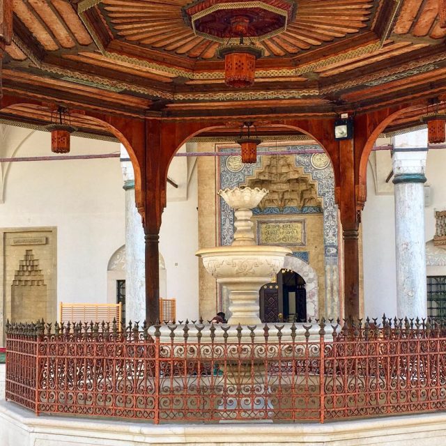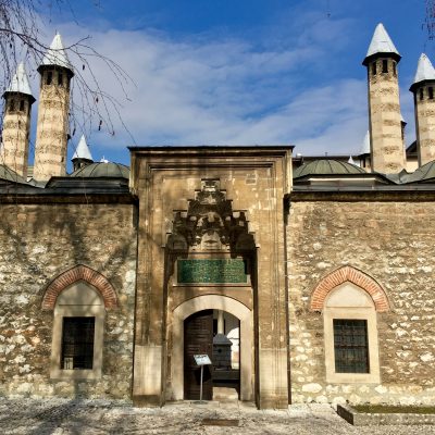 Vor und nach dem Mittagessen spazierten wir durch Baščaršija. Der orientalische Charme dieses Basarviertels hat es mir dabei sehr angetan. Sehenswürdigkeiten sind u. a. die Moscheen und Medresen, der osmanische Uhrturm, der Brunnen Sebilj und die alten Badehäuser. Das orientalische Flair wird von vielen Cafés und Teestuben und den Geschäften, die Teppiche und Kunsthandwerk anbieten, ebenso genährt. Eine Frage, die sich hier unweigerlich stellt, ist natürlich: Wann und warum hat sich der Islam hier verbreitet und wie ist es seinen Anhängern über die Jahrhunderte in dieser Region ergangen?