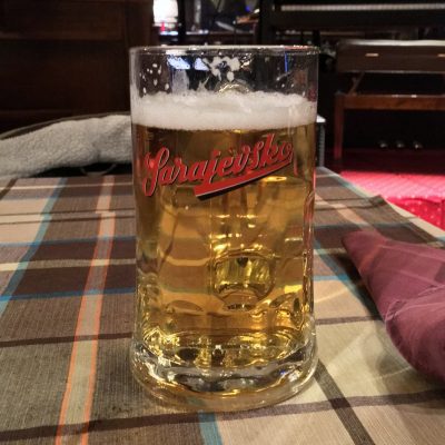 Nach dem Spiel schnappten wir uns eine Straßenbahn ins Stadtzentrum und kehrten, unweit von Lateinerbrücke und Kaisermoschee, in die Brauereigaststätte Sarajevska Pivara ein. Äußeres und Inneres der Brauerei (und ihres Restaurants) versprühten den Charme des ausgehenden 19.Jahrhunderts. Die Donaumonarchie hat schon ein paar schöne Bauwerke nach Sarajevo gebracht. Nur das Bierbrauen haben sie den Bosniern wohl unzureichend beigebracht. Das Sarajevsko Pivo schmeckte nicht wirklich (wahrscheinlich dürfen sie deshalb auch Oettinger in Lizenz brauen).