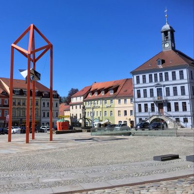 Kurz vor 11 Uhr ging es schließlich weiter nach Bischofswerda. Das 11.000-Einwohner-Städtchen erreichte ich 12:37 Uhr und weil der Stadtkern gleich am Bahnhof beginnt und das Stadion außerdem innerhalb des Stadtkerns liegt (500 Meter vom Marktplatz entfernt), reichten die gut 50 Minuten Zeitfenster bis zum Anpfiff für einen kleinen Stadtrundgang aus.