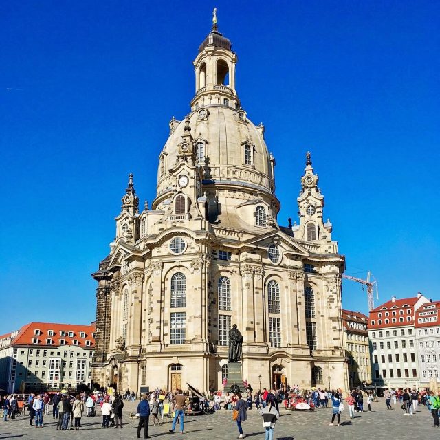 Die Route führte mich am Elbufer entlang zur Frauenkirche. Dabei kreuzte ich natürlich die ganzen architektonischen Höhepunkte der Altstadt. Die Semperoper, den Zwinger, die Katholische Hofkirche, den Fürstenzug und vieles mehr nahm ich in Augenschein. Alles schon mehrfach gesehen, doch jedes Mal auf’s Neue ein schöner Anblick. Viel mehr schreiben möchte deshalb zu Dresden auch gar nicht, zumal bestimmt bald wieder ein eigener Dresden-Reisebericht folgt (den designierten Absteiger 96 werde ich hoffentlich nächste Saison in die sächsische Hauptstadt begleiten können).