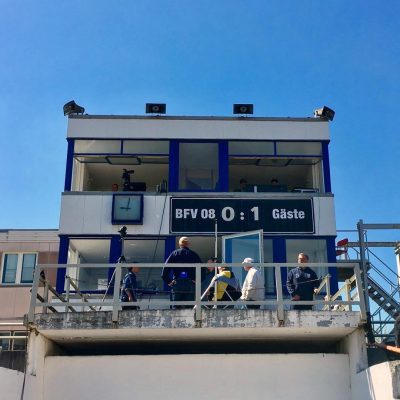 Bereits in der 2.Minute irritierte mich das Publikum. Ein blau-weißer Kicker erzielte das erste (und leider auch letzte) Tor des Tages. Doch warum freute sich nur eine Handvoll Menschen um mich herum? Hatte der BFV etwa nicht gerade die Führung erzielt? Nein, er lag nun früh hinten, da die Gäste in ihren blau-weißen Heimdressen aufgelaufen waren und der Gastgeber seine gelben Auswärtstrikots trug. Warum auch immer. Wahrscheinlich war der Zeugwart auf Ferienreise.