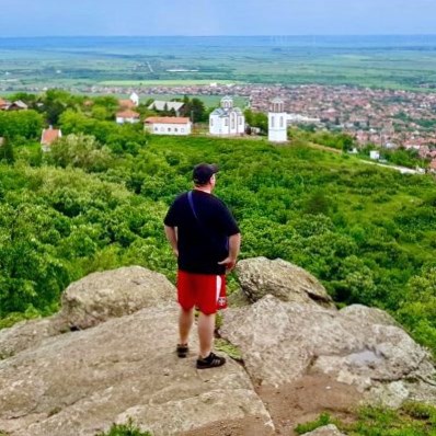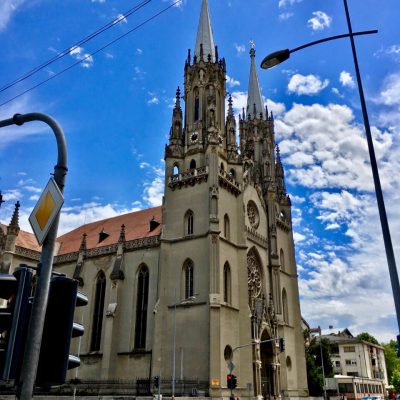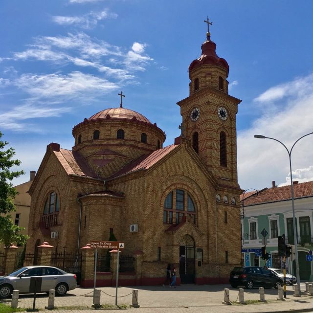 Vršac blieb zunächst multi-ethnisch, doch nach dem Zweiten Weltkrieg, in welchem die Banater Schwaben größtenteils mit den Nazi-Okkupanten kollaborierten (teils freiwillig, teils unter Zwang), wurde die Region ethnisch gesäubert. Wer von den Deutschsprachigen sowohl den Krieg, als auch die Arbeitslager der Nachkriegszeit überlebt hatte, wurde ausgebürgert und flüchtete in einen der drei deutschsprachigen Staaten (BRD, DDR oder Österreich) oder begann ein neues Leben in Übersee. Als wir eines der eindrucksvollsten Zeugnisse deutscher Präsenz bei unserem Stadtrundgang erreichten, nämlich die St.-Gerhard-Kirche von 1863 (Serbiens größter römisch-katholischer Kirchenbau), setzte plötzlich starker Regen ein und die Kirche war leider abgeschlossen. Somit mussten wir woanders Zuflucht finden.