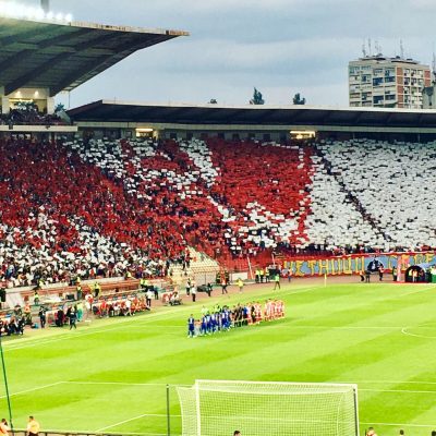 Bei einem Cappuccino freddo erfuhr ich via Wi-Fi-Zugang, dass Ole und der Abt bereits in Stadionnähe auf mich warteten und mir ein Ticket mitbesorgt hatten. Nach dem Check-in und einem netten Gespräch mit der noch netteren Vermieterin Vanja – das Apartment ist eine 9 und sie eine 10, deshalb wohl auch die aktuelle Durchschnittsbewertung von 9,5 bei einer großen Plattform für Hotelbuchungen – ging es also schnurstracks zum Kreisel am Bulevar oslobođenja, unweit des Stadions Rajko Mitić.