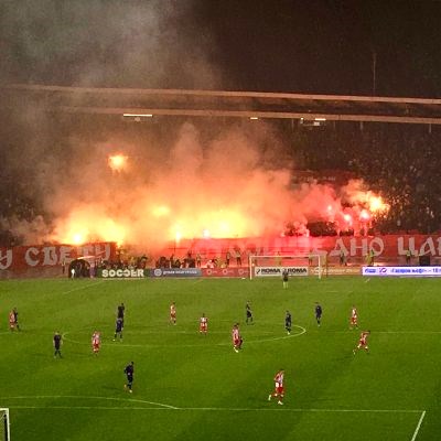 Kurz nach dem Ende des Feuerwerks, fiel schließlich in der 57.Minute das 2:0 durch Milan Jevtović. Sportlich schien also auch im letzten Spiel nichts anzubrennen, während auf den Rängen weiterhin fleißig gefackelt wurde. Damit sah es so aus, als würde der FK Crvena zvezda heute mühelos die 100 Punkte-Marke knacken (99 Punkte waren es in den bisherigen 36 Meisterschaftsspielen).