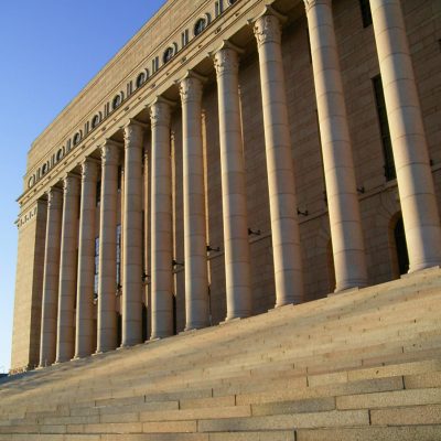 Nachdem sich das bürgerliche Lager durchgesetzt hatte, wuchs die Stadt weiter und der junge Staat schuf etliche neoklassizistische Gebäude wie zum Beispiel das Reichstagsgebäude (finnisch: Eduskuntatalo) von 1931. Auch der vor dem Krieg (1904) begonnene Hauptbahnhof wurde 1919 fertiggestellt. Das darin enthaltene Fürstenzimmer für Besuche des Zaren war allerdings obsolet geworden. Diese Lounge können seitdem die finnischen Präsidenten exklusiv für sich und ihre Staatsgäste nutzen. Wobei ich vermute, dass 100 Jahre später nicht mehr ganz so viele Staatsgäste mit dem Zug nach Helsinki kommen…