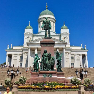 Nachdem die ernährungsphysiologisch fragwürdige, sowie mit Salat statt Pommes und Sodawasser an Stelle von Limo schöngefärbte Mahlzeit im Körper war, begann bei schönstem Sommerwetter (blauer Himmel und ca. 25° C Lufttemperatur) ein dreistündiger Innenstadtbummel durch Helsinki. Auch in der finnischen Hauptstadt durfte ein kurzer Ausflug in die Stadtgeschichte, visualisiert anhand der vielen Baudenkmäler, natürlich nicht fehlen.