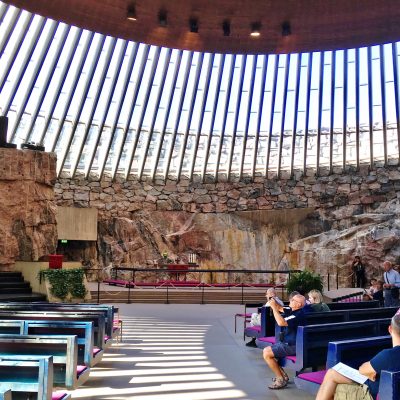 Nach dem Check-in hatte ich als nächsten Programmpunkt die Kirche Temppeliaukio auf der Liste. Diese moderne, spätexpressionistische Felsenkirche aus den 1960er Jahren wurde von den Architekten Timo und Tuomo Suomolainen in einen Garanitfelsen (Helsinkis Tempelberg) gebaut und durch die vielen Fenster des Kupferdaches ist sie trotzdem gut lichtdurchflutet. Sonntags um 16 Uhr ist immer ein Orgelkonzert des hiesigen Organisten Henri Hersta, dem zumindest ich gerne beiwohnte. Der gute Mann spielte heute rund 30 Minuten Sakralmusik von Dieterich Buxtehude, Johann Sebastian Bach und Charles-Marie Widor.