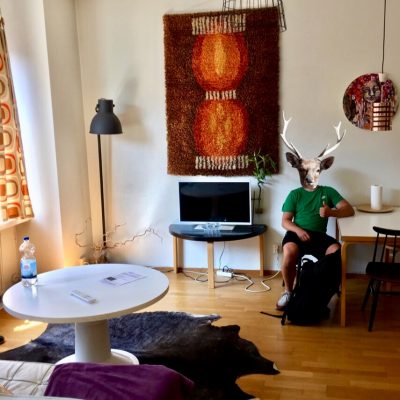 Mit vorher übermitteltem Türcode und der enstsprechenden Apartmentnummer, konnten wir selbstständig die Bleibe beziehen. War ’ne nette kleine Bude, die sicher für unsere Verhältnisse viel Miete kostet. Für 100 € pro Nacht war es jedoch im Preisvergleich ein Schnäppchen für uns. Dafür waren die Betten sehr unbequem. Die Matratzen waren gefühlt so dünn wie die Stoffauflagen von Gartenmöbeln. Aber war nur für eine Nacht und besser als Dimitri’s Inn in Vilnius war es allemal.