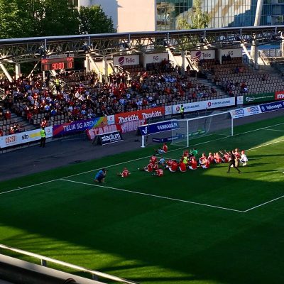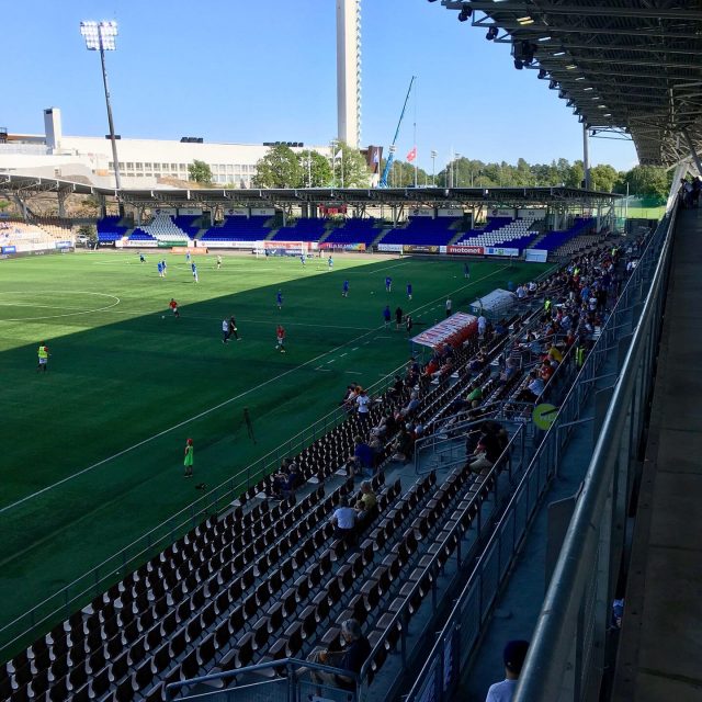 Statt einem Hauch von internationalem Spitzenfußball, mussten wir uns also weiterhin im Schatten des Olympiastadions mit zwei Abstiegskandidaten der Veikkausliiga zufrieden geben. Das einzige Tor des Tages erzielte dabei HIFK-Sturmspitze Sakari Tukiainen in der 24.Minute. Da ansonsten nicht viel passierte, standen am Ende drei wichtige Punkte auf dem Konto des siebenfachen Meisters Helsingfors IFK. Der Club ist übrigens, man merkt es vielleicht schon am Namen, 1897 von der schwedischen Minderheit gegründet worden. Rund 12 % der ca. 635.000 Einwohner Helsinkis sind noch heute schwedische Muttersprachler. Deshalb ist neben Finnisch auch Schwedisch Amtssprache und in der Regel alles zweisprachig beschildert.
