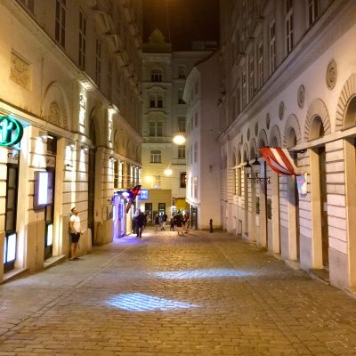 Nach einem Fast-Food-Zwischenstopp am Schwedenplatz, fanden wir schließlich noch eine Pinte, die um 2:30 Uhr gut gefüllt war. Das Vulcania in der Judengasse war eine gute Alternative zu den ansonsten noch geöffneten Clubs des Viertel, deren Türsteher wahrscheinlich zwei Typen in Turnschuhen und Sportshorts abgewiesen hätten. Wir mussten nämlich bis zum Abflug nach Hannover noch ein paar Stunden rumkriegen. Weil der gebuchte Flug (mit Eurowings à 39 €) um 6:05 Uhr abheben sollte, verzichteten wir nämlich auf ein Hotel. Für eine Nachtruhe von 0 Uhr bis 4 Uhr hätte sich das nicht gelohnt, dann lieber 20 € in Bier als 40 € in ein Bett investieren.
