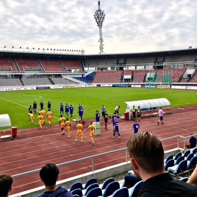Den fantechnischen Umständen entsprechend, gönnte ich den Hausherren gerne den Sieg und freute mich über das 2:0 in der 32.Minute. Der ecuadorianische Mittelfeldmotor Augusto Alexi Quintero Batioja hatte für die Rot-Weißen getroffen. Bei einem ecuadorianischen Legionär in der tschechischen 2.Liga schaut man natürlich mal in die Biographie und interessanterweise hatte der Mann 2010 beim serbischen FK Inđija sein europäisches Abenteuer begonnen (da bin ich bekanntlich auch gerade erst gewesen…). Über u. a. die Stationen OFK Beograd, FK Radnički Niš (war ich 2017 mal zu Gast) und FC Vysočina Jihlava landete er 2017 bei Viktoria Žižkov.