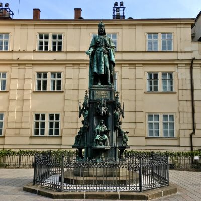 1357, also zwei Jahre nach seiner Kaiserkrönung, verordnete er den Bau der steinernen Karlsbrücke. Diese verbindet bis heute die Altstadt mit der Kleinseite und ist eine der größten Touristenattraktionen Prags (ich war ganz froh, sie schon gegen 9 Uhr morgens, anstatt nachmittags, überquert zu haben). Über diese Brücke führte fortan auch der Krönungsweg der böhmischen Könige vom altstädtischen Königshof zum Veitsdom auf dem Hradschin. Diesen rund 4 km langen Königsweg bin ich übrigens am heutigen Morgen gegangen (vorerst exklusive Aufstieg zum Hradschin), denn die Route umfasst die wesentlichen Sehenswürdigkeiten der Prager Altstädte. Man erlebt unter anderem: