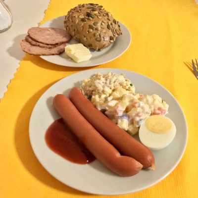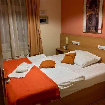 Auch der Prager Hauptbahnhof wurde planmäßig erreicht und von dort trennte mich nur ein kurzer Spaziergang vom Hotel (ca. 15 Min). 21:45 Uhr war ich eingecheckt und im Zimmer fiel mir auf, dass über dem Bett sofort an meinen kürzlichen Wien-Besuch angeknüpft wurde. Hing dort doch ein Druck des Kunstwerks „Judith 1“ von Gustav Klimt über dem Bett, dessen Original man im Wiener Schloss Belvedere finden kann. Doch nun Schluss mit diesen Nebensächlichkeiten. Kommen wir lieber zu den wichtigeren Dingen des Lebens; nämlich dem Hotelfrühstück. Das war erfreulicherweise im Preis von 37,50 € pro Nacht inklusive und wurde am nächsten Morgen gleich um 7:30 Uhr von mir getestet. Neben diversen Teigwaren, Aufschnitt, Aufstrich, Müslis usw. gab es warme Würstchen und Suppe. Allerdings vermisste ich warme Eierspeisen und gebratene Würstchen sehr. Damit wäre das Frühstücksbuffet deutlich attraktiver gewesen.