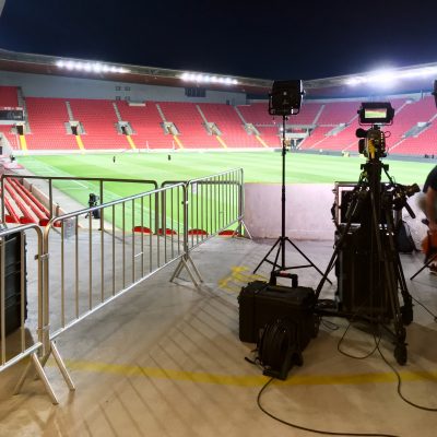 Eigentlich wollte ich so früh wie möglich im Stadion sein (Anpfiff war 19:30 Uhr), um die VIP-Karte durch mächtigen Konsum von fester und flüssiger Nahrung in eine befriedigende Investition zu verwandeln. Allerdings hatte das touristische Mammutprogramm, in Kooperation mit Temperaturen von ca. 30° C, noch die dringende Notwendigkeit eines Duschbads provoziert. Zum Glück lag das Hotel halbwegs auf dem Weg vom Hradschin zum Stadion und gegen 18:55 Uhr hatte ich endlich mein VIP-Bändchen um das frisch gewaschene Handgelenk fixiert. Nik und LMS traf ich wie verabredet hinter dem Drehkreuz und gemeinsam stürzten wir uns nun auf Würste, Steaks und Gulaschsuppen. Mittag- und Abendessen mussten schließlich nachgeholt werden.