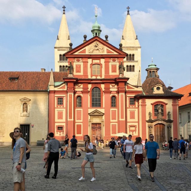 Den Aufstieg zum Hradschin holte ich nun nachmittags nach. Um meinen morgendlich begonnenen Prager Königsweg vernünftig zu vollenden, gönnte ich mir oben ein Besucherticket der Kategorie B für umgerechnet 12 €, welches Zutritt in den Dom, den alten Königspalast, die St. Georgsbasilika und ins Goldene Gässchen gewährte. Ein Ticket der Kategorie A für ca. 16 € hätte darüber hinaus noch den Pulverturm, den Rosenberger Palast und eine Ausstellung zur Geschichte der Prager Burg inkludiert, aber ich hatte nur noch ein Zeitfenster von 2,5 Stunden, so dass lediglich die erste Variante Sinn hatte.