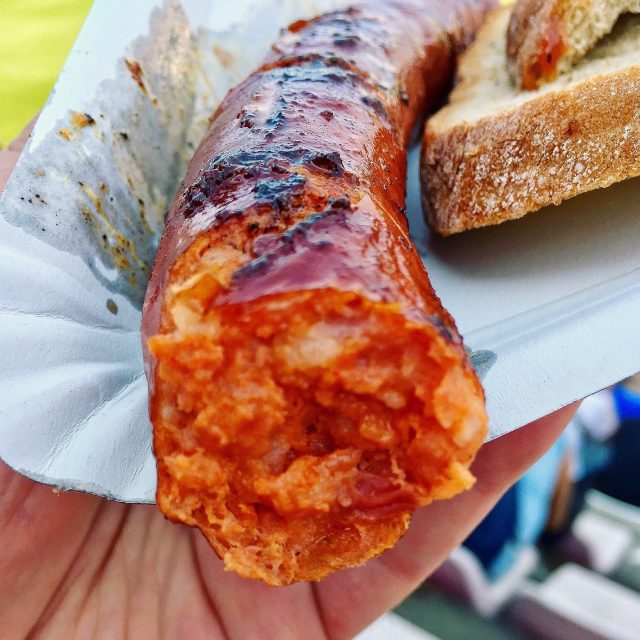 Aber erstmal genug von Trivia und Nostalgie, kommen wir nun zur Kulinarik. Oder eigentlich auch nicht. Denn der FK Slavoj Vyšehrad hatte doch tatsächlich keinen ersehnten Würstchengrill aufgebaut. Stattdessen gab es warme Wiener, wovon ich beim Frühstück schon genug hatte. Da lässt man morgens extra noch Platz für die vermisste Klobasa im Magen, doch dann betrete ich ausgerechnet das mutmaßlich einzige klobasafreie Stadion des tschechischen Fußballs. Ich war sehr enttäuscht und ich glaube die rund 50 anwesenden deutschen Groundhopper unter den 851 zahlenden Zuschauern (Eintrittspreis übrigens ca. 3,90 €) waren es ebenfalls.