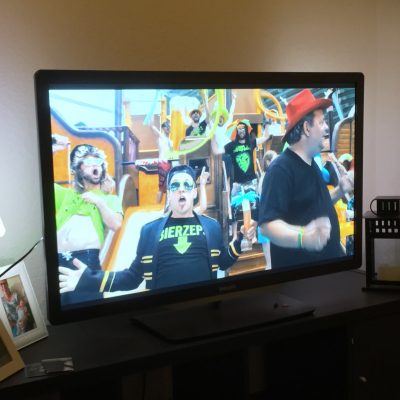 Dort sondierten wir die Bierreserven und die waren natürlich nicht ausreichend. Also wurde nochmal etwas Gerstensaft beim Bier Butler geordert. Anscheinend ein beliebter 24/7-Bierlieferservice in der sächsischen Landeshauptstadt. Zwölf halbe Liter Feldschlösschen kosteten übrigens 18,96 € (inklusive Flaschenpfand) und schmeckten zu nächtlicher Stunde formidabel. Dazu lief Trinklust befeuernde Musik in Zimmerlautstärke. Später wechselten wir aber auch zu seriöser Beschallung und ein Musikvideo der Foo Fighters regte an, sich noch diverse alte Werbespots der Marke Mentos anzuschauen (die sind im Video zu „Big Me“ wirklich hervorragend persifliert). Als endlich kein Bier mehr übrig war, näherte sich der kleine Zeiger auf der Wanduhr schon wieder der Ziffer 5. Also ab ins Bett!