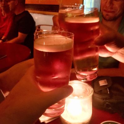 Auch nach diesem Abstecher blieb in der abends mächtig belebten Neustadt noch genug Auswahl für weitere gastronomische Impressionen. Nächster Stopp war die Bar Paradox mit einer sehr großen Craftbeerauswahl auf der Schiefertafel. Irgend ein experimenteller Kleinsud aus dem Hause Maisel kam in den Hunken, aber ich weiß den Namen nicht mehr. Alsbald zogen wir in den Irish Pub namens Old Beams weiter. Hier gab es stilgerecht Guinness und ein interessantes Gespräch mit Gunnar vom Nachbartisch. InterCityBerger saß am nächsten dran und musste den Wendeverliererversteher mimen. Er versuchte seine Argumente gegen Parteien wie die AfD und über die Vorzüge unseres Systems nicht als Besserwessi vorzubringen. Nichtsdestotrotz wird Gunnar wohl auch nach der Begegnung mit Berger immer noch der Meinung sein, dass die BRD kein freies Land und ein Unrechtsstaat ist. AfD oder so will er aber nicht wählen, weil wenn Wahlen was ändern würden, wären sie laut ihm schon längst verboten.
