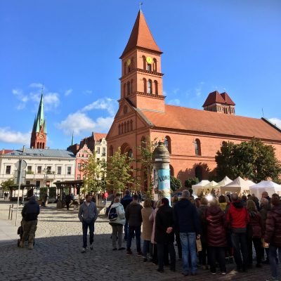 Doch nun rief erstmal Toruń. Die zweite Hauptstadt der Województwo Kujawsko-Pomorskie (Woiwodschaft Kujawien-Pommern) – Bydgoszcz und Toruń teilen sich den Hauptstadtstatus – wurde um 9:52 Uhr erreicht und auch hier schien die Herbstsonne. Zunächst einmal gönnte ich mir das wunderschöne Altstadtpanorama vom rechten Ufer der Wisła (Weichsel), da der Bahnhof auf dieser Uferseite liegt. Dann ging es per Bus rüber in die Altstadt und ich tauchte für knapp drei Stunden in die reiche Geschichte Thorns bzw. Toruńs ein.