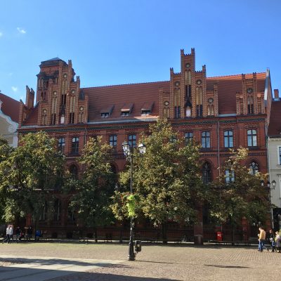 Am Sonntagmorgen klingelte der Wecker um 7:30 Uhr in Bydgoszcz (Bromberg). Ich hatte schließlich Termine. Kurz frisch gemacht und ab zum Frühstücksbuffet meiner Unterkunft. Das ließ bei der Auswahl kaum Wünsche offen und die zunächst vermissten warmen Eierspeisen wurden auf Bestellung frisch in der Küche zubereitet. Nach dem Frühstück ging es sofort los zum Hauptbahnhof, da ich bereits um 9:12 Uhr einen InterCity nach Toruń (Thorn) besteigen musste. In der Morgensonne machten die knapp zwei Kilometer zum Bahnhof natürlich mehr Spaß als in der Nacht zuvor und das Jugendstilviertel war echt was für’s Auge. Bydgoszcz muss ich auf jeden Fall nochmal besuchen und genauer inspizieren.