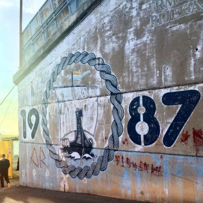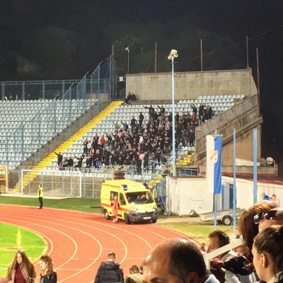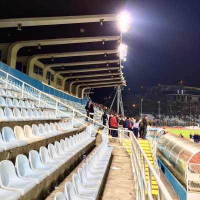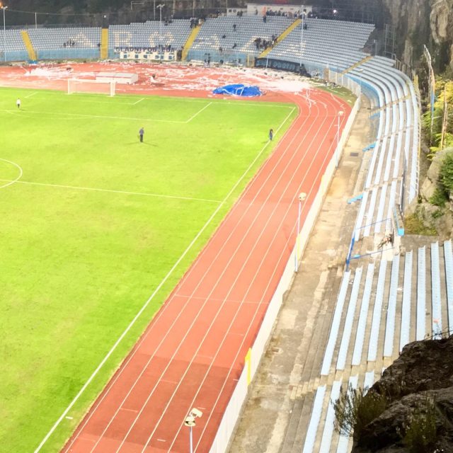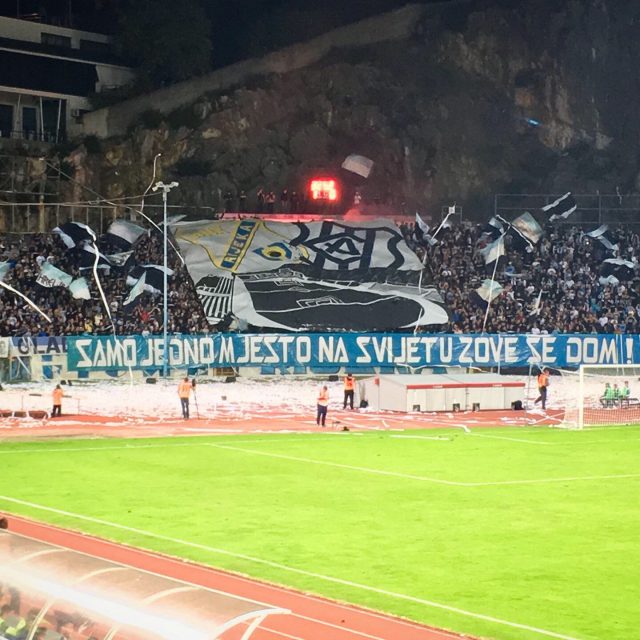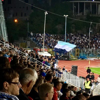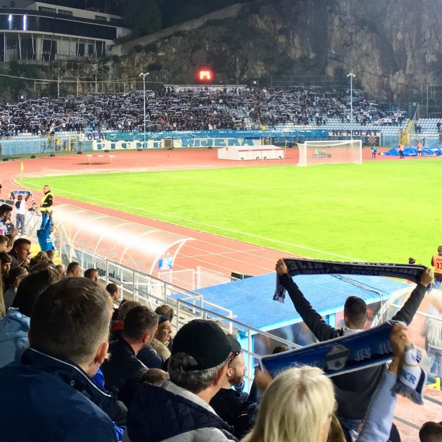 Apropos Kultur… Perfektes Stichwort, um mich nach vier Stunden Stadtgeschichte endlich der lokalen Fußballkultur zu widmen. Da die Busse aus dem Zentrum in den rund 6 km entfernten Stadtteil Kantrida erwartungsgemäß hoffnungslos überfüllt waren, organisierte ich mir einen Uber-Fahrer für umgerechnet 4,85 €. Aldo sein Name und dieser verriet schon seine Zugehörigkeit zur italienischen Minderheit von Rijeka, die nur noch 2 bis 3 % der Bevölkerung ausmachen soll. Allerdings betreibt die Minderheit rege Kulturpflege mit Zeitungen, Rundfunk und Schulen in italienischer Sprache, wie mir Aldo berichtete.