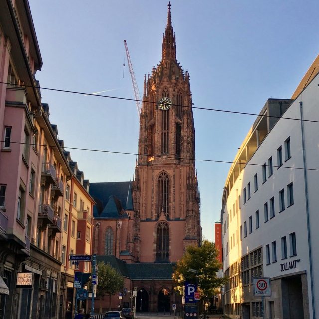 Bei meinem Stadtrundgang habe ich logischerweise das Goethehaus, die Paulskirche, den Römer und den Dom auch gleich „mitgenommen“, ehe gegen 9 Uhr die ersten ostasiatischen Tourimobs aufmarschierten. Das war für mich das Signal die nächstbeste S-Bahn von der zentralen Station Hauptwache zum Flughafen zu nehmen. Ryanair boardete natürlich am hinterletzten Gate (D52) und mit dem Bus wurden auf dem Rollfeld auch noch einige Meter Richtung Darmstadt gemacht. Aber was soll ich mich bei 9,99 € Flugpreis beschweren? Stattdessen freute ich mich über eine Pünktlichkeitsfanfare beim hoffentlich allerletzten Ryanair-Erlebnis meines Lebens und hatte den ganzen Flug über Kopfkino bezüglich eines Celebrity Deathmatchs zwischen Greta Thunberg und Michael O’Leary. Ich hab für’s Gewissen natürlich noch 5 € CO2-Kompensation bei Atmosfair gezahlt. Man will der heranwachsenden Generation schließlich nicht die Zukunft und die Träume stehlen (How dare I!).