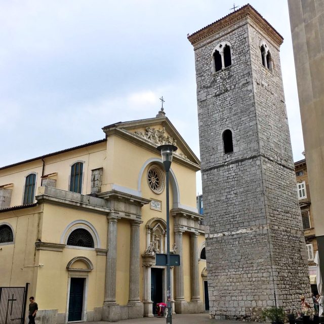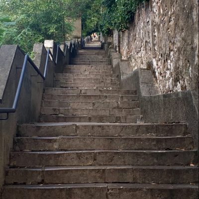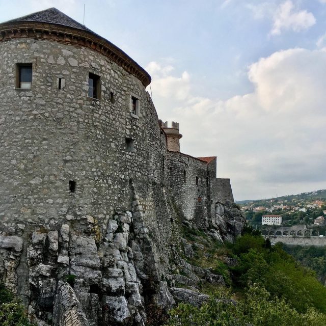 Gegen 14 Uhr konnte ich schließlich mein touristisches Programm beginnen und löste ein Busticket für umgerechnet 1,35 € (Einfache Fahrt) vom Stadtzentrum auf den Hügel Trsat. Denn auf dem Trsat befinden sich u. a. eine Burg und ein Franziskanerkloster (zugleich eine Marien-Wallfahrtstätte) und auf jenem Hügel nahm die Stadtgeschichte von Rijeka ihren Anfang. Ich überlegte auch kurz die 1,5 km (und ca. 150 Höhenmeter) auf den ab dem 16.Jahrhundert angelegten Treppen des Pilgerweges zum Kloster per pedes abzuleisten, aber natürlich ausschließlich aus Zeitgründen verzichtete ich auf diese nachmittägliche Ertüchtigung. Stattdessen erreichte ich die Anhöhe mit Ruhepuls und war somit vollends aufnahmefähig für das Kulturprogramm. Meine gewonnenen Erkenntnisse möchte ich euch natürlich nicht vorenthalten.