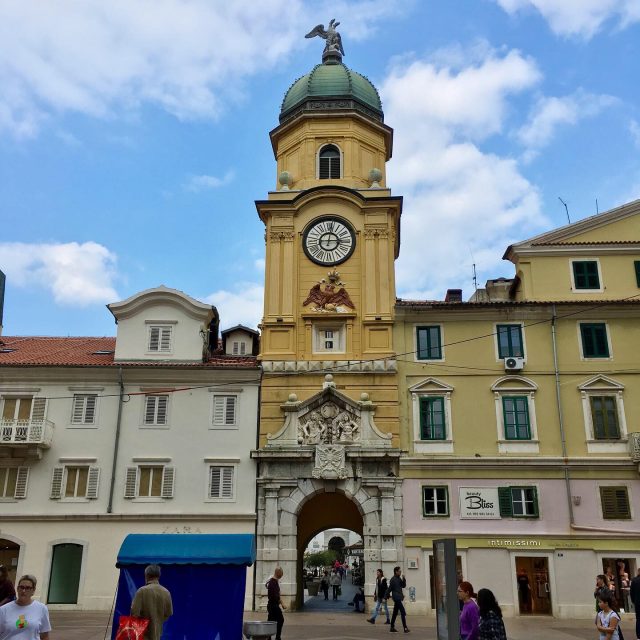 Nach dem Österreich-Ungarischen Ausgleich von 1867 (auf den ich u. a. im Zagreb-Bericht schon eingegangen bin) gehörte das heutige Rijeka wieder zur ungarischen Reichshälfte der Habsburger. Für die Ungarn wurde Fiume zum ersten und einzigen Überseehafen, während die Österreicher mit Triest noch den größten Adriahandelshafen überhaupt besaßen und außerdem bereits zwei Jahrzehnte zuvor beschlossen hatten, dass das nahe Pula in Istrien zum Haupthafen der kaiserlich und königlichen Kriegsmarine ausgebaut wird. Die Ungarn verbanden die Stadt nun über Zagreb (Agram) auf dem Schienenweg mit Budapest. Darüberhinaus war die Stadt via Ljubljana (Laibach) über die österreichischen Südbahnen mit Wien verbunden.