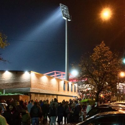Von der Festung ging es via Trg Slavija und dem Dom des Heiligen Sava zum Stadion Rajko Mitić. Da wir dort bereits gegen 19:45 Uhr aufschlugen, war noch Zeit für ein obligatorisches Fußballbierchen. Kurz nach 20 Uhr orientierten wir uns allerdings zu den Eingängen der Nordkurve und mussten ein zähflüssiges Gedränge ertragen. Na ja, so ca. 20:30 Uhr lag auch die vorletzte Hürde des Abends hinter uns. Der Endgegner war nun noch von der Nord- auf die Osttribüne (Gegengerade) zu gelangen. Die Sever (Nordkurve) wäre zwar ein spannender und stimmungsvoller Ort zum Beiwohnen des Spiels gewesen, aber als Tourist fühlt man sich da doch deplatziert.