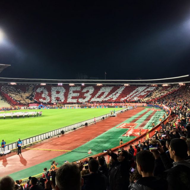 Pünktlich zum Einlauf der Teams wurde schließlich eine Choreographie in der Nordkurve präsentiert. Zwei klatschbereite Hände umrahmten einen weißen Schriftzug „Zvezda le“ (dt.: „Nur Zvezda“) auf rotem Grund. „Zvezda le“ ist außerdem der Refrain des beliebten Fanliedes „Zvezda mi je sve“ („Zvezda ist alles für mich“). Es war also angerichtet und getragen von einer fabelhaften Stimmung versuchte der FK Crvena zvezda das Wunder aus der Vorsaison zu reproduzieren, als man den späteren Titelgewinner Liverpool FC im Marakana mit 2:0 zurück auf die Insel schickte. Das war auf den Tag genau vor einem Jahr und nun war mit dem Vorjahresfinalisten Tottenham Hotspur ein ähnliches Schwergewicht zu Gast. So wie man letzte Saison zunächst auswärts chancenlos war (0:4 in Liverpool), gab es auch dieses Mal eine hohe Niederlage in der Fremde (0:5 in London). Mit dem nötigen Optimismus konnte man also sogar ein kürzliches Debakel als gutes Omen werten.