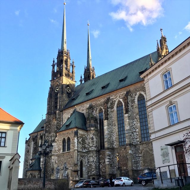 Die ihr von Beginn an zugedachte Rolle als Primatstadt Mährens, füllte Brünn schon ab dem späten 13.Jahrhundert mit einer Reihe von großen Sakralbauwerken und großzügigen Marktplätzen wie dem Zelný trh (Kohlmarkt) oder dem Dolní trh (Unterer Markt) aus. Im 14.Jahrhundert wurde beispielsweise aus der romanischen Petruskirche eine dreischiffige gotische Basilika, die seit 1777 als Katedrála svatých Petra a Pavla (Kathedrale St. Peter und Paul) die Bischofskirche des Bistums Mähren ist. Aus diesem Anlass bekam die Basilika im späten 18.Jahrhundert eine barocke Umgestaltung im Inneren, während das Exterieur gotisch blieb bzw. noch später neogotisch erweitert wurde. Durch ihre exponierte Lage auf einem Hügel, dominiert sie zusammen mit der Festung bis heute die Altstadt-Silhouette von Brno.