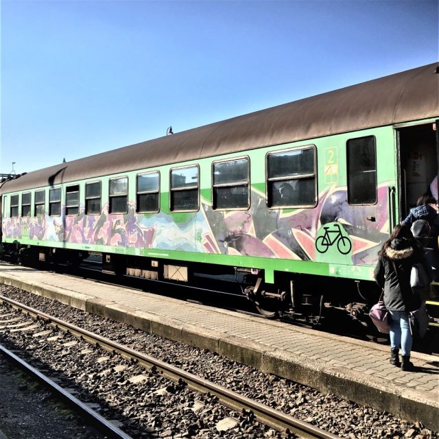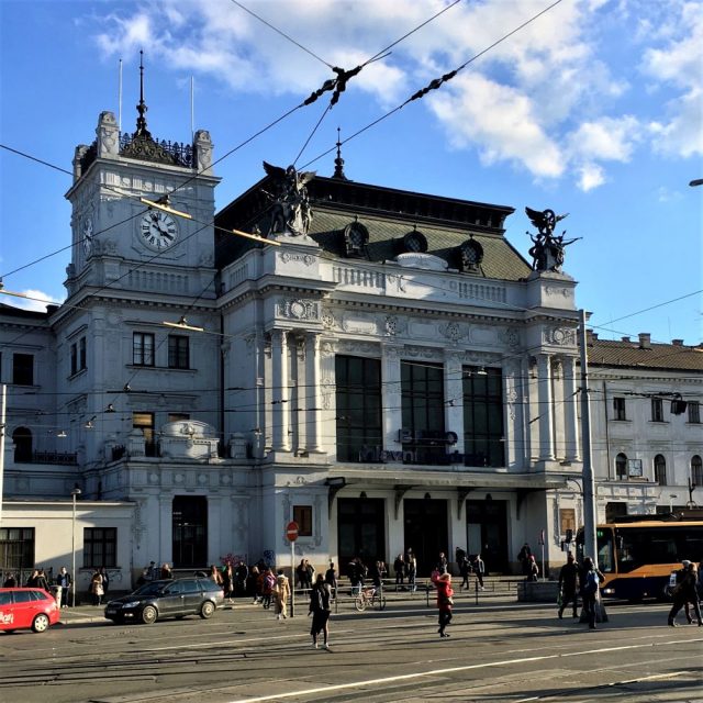 Aus dem slowakischen Nitra (Neutra) ging es am fünften Märzmorgen per Bahn via Nové Zámky (Neuhäusl) ins tschechische Brno (Brünn). Das Ticket hatte ich – wie fast alle auf dieser Tour – bei der tschechische Staatsbahn České dráhy im Voraus online gekauft. Dieses kostete umgerechnet 13,12 € und um 10:03 Uhr sollte am Nitraer Bahnhof Abfahrt sein. Leider startete der Regionalzug im ersten Reisesegment mit 30 Minuten Verspätung und holte bis Nové Zámky auch nichts mehr auf (Ankunft nun 11:16 Uhr statt 10:46 Uhr). So halfen mir selbst großzügige 25 Minuten Umstiegszeit nicht mehr und weil der nächste EuroCity nach Brno erst 13:11 Uhr fahren sollte, durfte ich nun 115 Minuten in Nové Zámky verbringen.