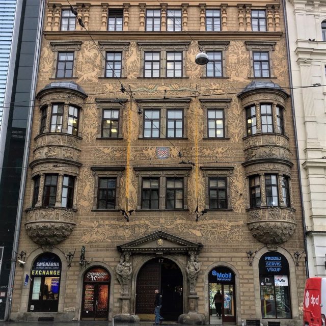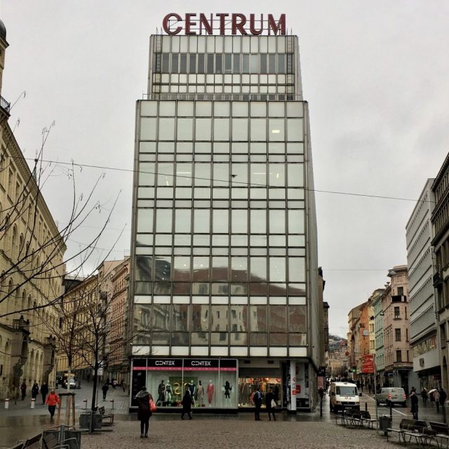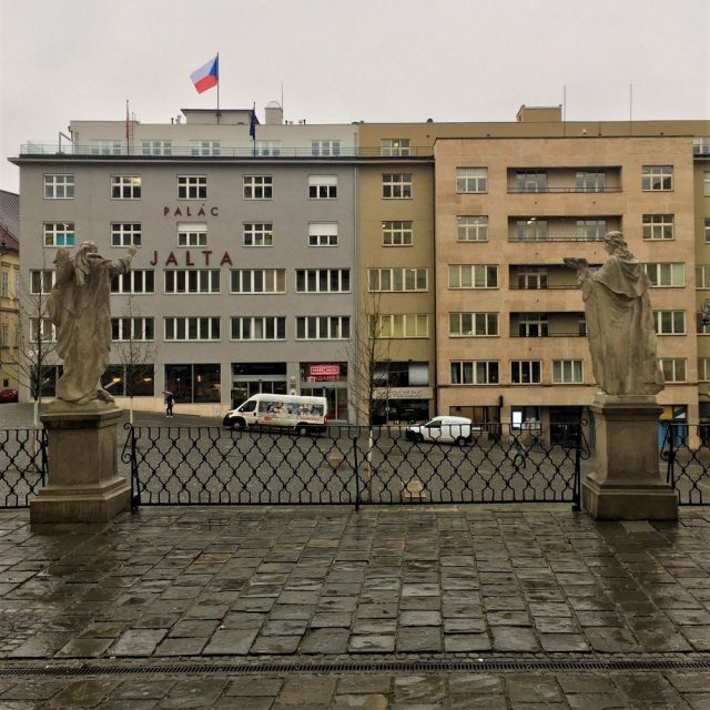 Anschließend machte ich noch Station bei diversen architektonischen Vertretern der Mährischen Moderne im Altstadtbezirk. Für die Villa Tugendhat genügte, wie bereits erwähnt, die Zeit leider nicht, aber ich kam trotzdem auf meine Kosten. Außerdem pfiff ich mir noch beim Vizeweltmarktführer der Systemgastromie einen deftigen Bagel nebst Orangensaft rein. Auf das inkludierte Frühstück im Bunker wollte ich mich besser nicht verlassen.