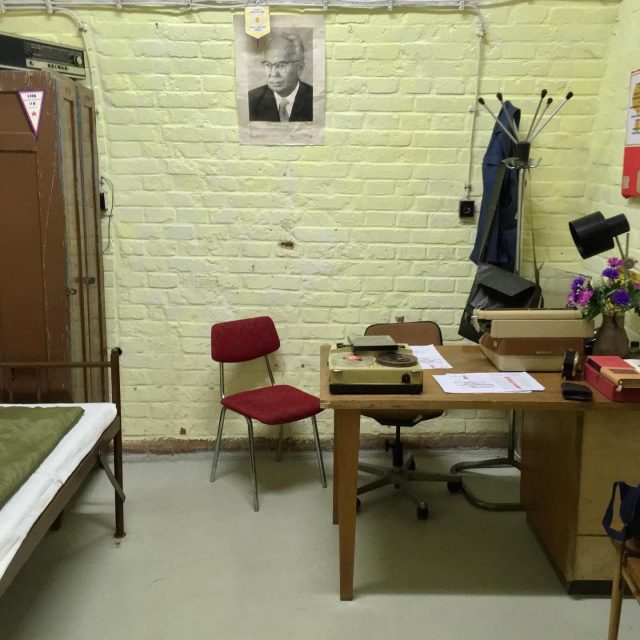 Als mit Kriegsende das Zeitalter der Atombombe begann und es zu einem nuklearen Wettrüsten zwischen Ost und West kam, wurden hüben wie drüben natürlich Atomschutzbunker en vogue. 1959 modernisierte die Kommunistische Partei der Tschechoslowakei (KSČ) deshalb die bestehende Bunkeranlage im Spielberg. Der Atomschutzbunker sollte im Fall der Fälle auf 1.500 m² bis zu 500 für die Stadt- und Kreisverwaltung wichtigen Personen Platz bieten. Erfreulicherweise kam es nie zum Ernstfall und heute können Interessierte wie meine Wenigkeit haptisch und multimedial (es gibt viele Erklärfilme im Museum) in die Welt des Kalten Krieges eintauchen.