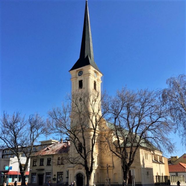 Steinerne Zeugen der wechselhaften Geschichte fand ich allerdings fast ausschließlich aus der zweiten Hälfte des 20.Jahrhunderts. Denn ein Großteil der Stadt wurde im Zweiten Weltkrieg durch Bombenangriffe zerstört. Lediglich die römisch-katholische Marktkirche Povýšenia sv. Kríža (Erhöhung des Heiligen Kreuzes) aus dem 17.Jahrhundert, das Franziskanerkloster (ebenfalls 17.Jahrhundert) und die Synagoge (19.Jahrhundert) überstanden die Zerstörung und anschließende Neugestaltung der Stadt.