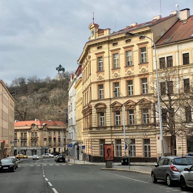 Nach dem Essen war es zwar erst 13:30 Uhr, doch mein Hotelzimmer würde bestimmt schon bezugsfertig sein. So war es dann auch und gegen 13:45 Uhr war ich ohne lästiges Gepäck zurück auf dem Prager Straßenpflaster (ich war doch tatsächlich vormittags mal notgedrungen mit Rucksack im Stadion und fühlte mich die ganze Zeit von den Groundhoppern mit „Ah, noch einer von uns“-Blicken gewürdigt). Da ich bereits in 2,5 Stunden am Stadion von Slavia sein wollte, brauchte ich allerdings keine große touristischen Projekte mehr starten. Ich beschloss lediglich ein wenig durch Žižkov zu flanieren und außerdem den Hügel des tschechischen Nationalmonumentes zu erklimmen.