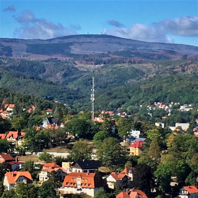 Doch bevor es zu staatstragend wird, ab zur heutigen Tour! 8:14 Uhr ging es am Hildesheimer Hauptbahnhof los und zum mittels BahnCard rabattierten Preis von 26,60 € (return) ging es binnen 81 Minuten ins schöne Wernigerode. Bei herrlicher Morgensonne war mein erstes Ziel das hiesige Schloss, welches ich gerne schon kurz nach Öffnung (10 Uhr) besichtigen wollte. Ganz unabhängig von der gegenwärtigen Pandemie mag ich keine Tourimassen und auf einem Sonntag drohte natürlich viel Andrang bei so einer Sehenswürdigkeit ersten Ranges. Also sogleich den Schlossberg hochgekraxelt und damit die Waden schon mal für die weiteren Aufgaben des Tages eingeschworen. Bevor ich das Drehkreuz für 7 € passierte, genoss ich noch den herrlichen Ausblick von der Schlossterrasse. Mir bot sich ein schönes Oberharzpanorama mit dem erhabenen Brocken (1.141 Meter ü. NN) in dessen Mitte. Der höchste Gipfel des Harzes liegt übrigens noch auf dem Stadtgebiet Wernigerodes, obwohl er gute 17 Wanderkilometer von der Kernstadt entfernt ist.