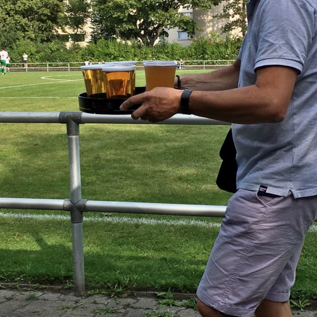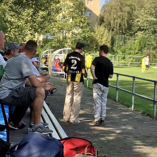 In Sachen Catering gab es übrigens nur einen informellen Bierverkauf aus einer Kiste heraus, so dass mein Frühstück noch weiter nach hinter verschoben werden musste. Dafür wurde ich während der 2. Halbzeit von einem hannoverschen Groundhopper erspäht. „Guten Tag Herr Snepanovic […] heute aber mal über die volle Spielzeit bleiben und nicht wieder früher abhauen!“ drang plötzlich in meine Ohren. Das war doch tatsächlich Helge, seines Zeichens Hauptkommissar bei der Hopperpolizei, mit dem sich meine Weg auch schon auf meiner mitteleuropäischen Frühjahrestour in Prag kreuzten (oder auch in Manchester am Silvesterabend 2017). Gut, der Mann guckt an geschätzt 363 Tagen im Jahr irgendwo Fußball. Da kann es schon mal passieren, dass man sich alle paar Monate zufällig an einem Spielort über den Weg läuft.