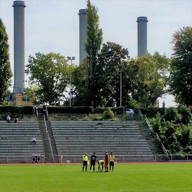 Die wirtschaftlich erheblich unter der gegenwärtigen Pandemie leidende Deutsche Bahn nervte mich den ganzen Sommer mit Schnäppchenpreisen und Reisevorschlägen via Newsletter. Na gut, dachte ich mir. Wird halt mal wieder Berlin aller et retour für 29 € gebucht. Wenn am Sonntag den 13. September obendrein noch Hauptkampftag der ersten Hauptrunde des Berliner Landespokals ist, kann man damit eigentlich nichts verkehrt machen. Zumal um 12 Uhr mittags das in den letzten Jahren sehr selten bespielte Stadion Wilmersdorf einer der Austragungsorte war. Im Anschluss wäre dann noch locker ein weiteres Spiel möglich und theoretisch hätte ich drei sogar Sonntagsspiele besuchen können. Aber frühmorgens aufstehen für SC Minerva gegen Kickers Hirschgarten auf einem tristen Kunstrasenplatz (Anstoßzeit: 9 Uhr)? Nee, liebe Groundhopper, da bleibt ihr schön unter euch!