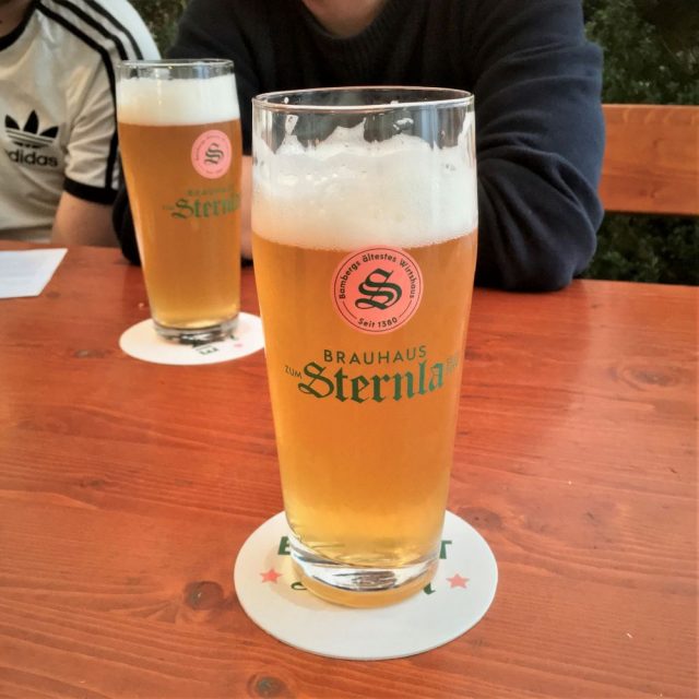 Die malerische Stadt an der Regnitz wurde nachmittags erreicht und die bei Airbnb gebuchte Bude konnte per Schlüsselbox kontaktlos bezogen werden. War eine geräumige, aber etwas abgerockte Wohnung, welche uns für das Wochenende rund 200 € kostete. Nach der Aufteilung der Schlafgelegenheiten ging es sogleich in die circa 1.896 Meter entfernte Altstadt. Wir kamen aus Richtung Wunderburg und daher war das erstbeste altstädtische Wirtshaus das Zum Sternla in der Langen Straße. Dort waren zwar alle Tische reserviert, aber wenigstens bis 19 Uhr konnte man uns einen davon zur Verfügung stellen.